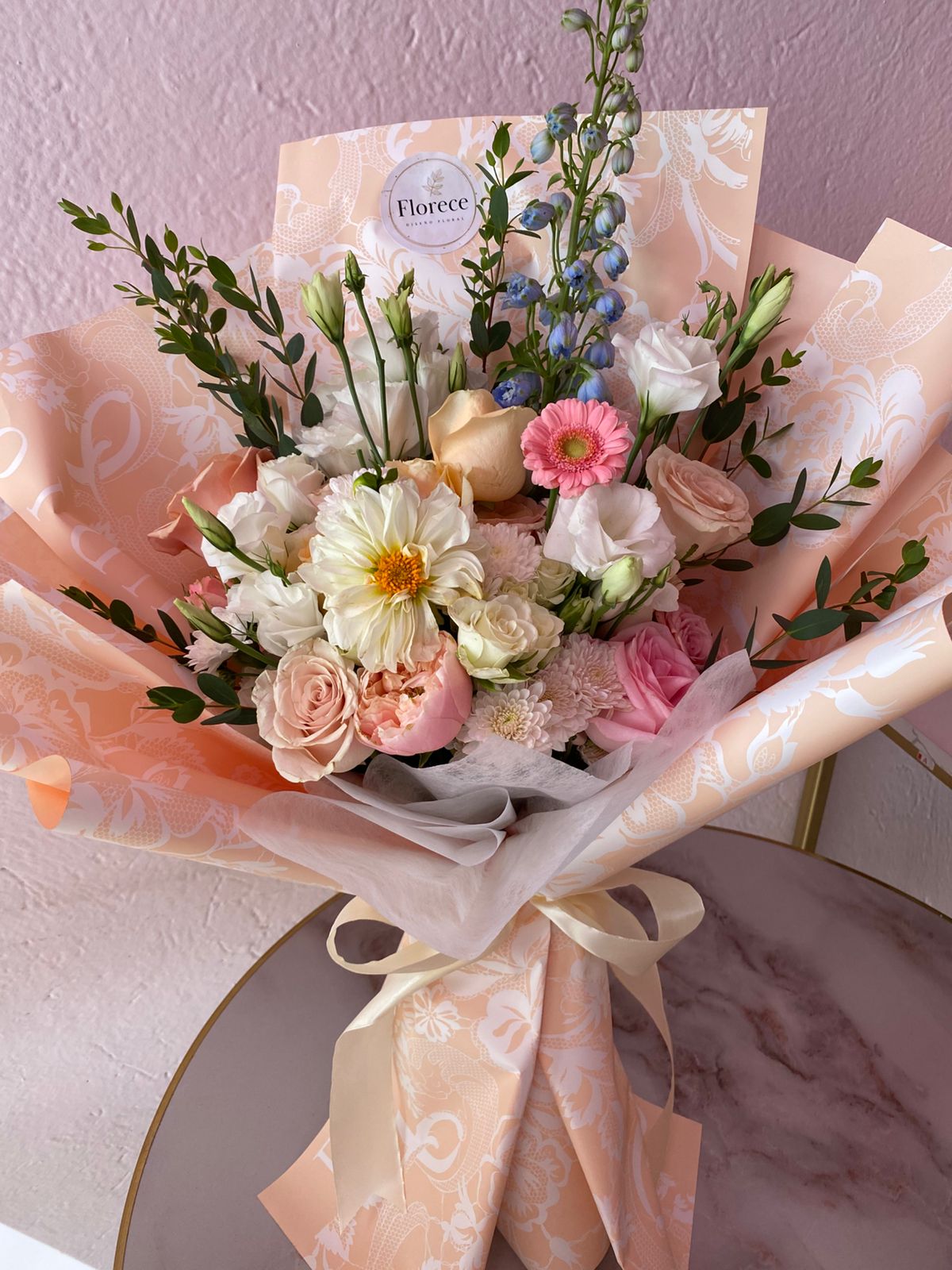 Hermoso ramo con rosas inglesas en tonalidades rosas.